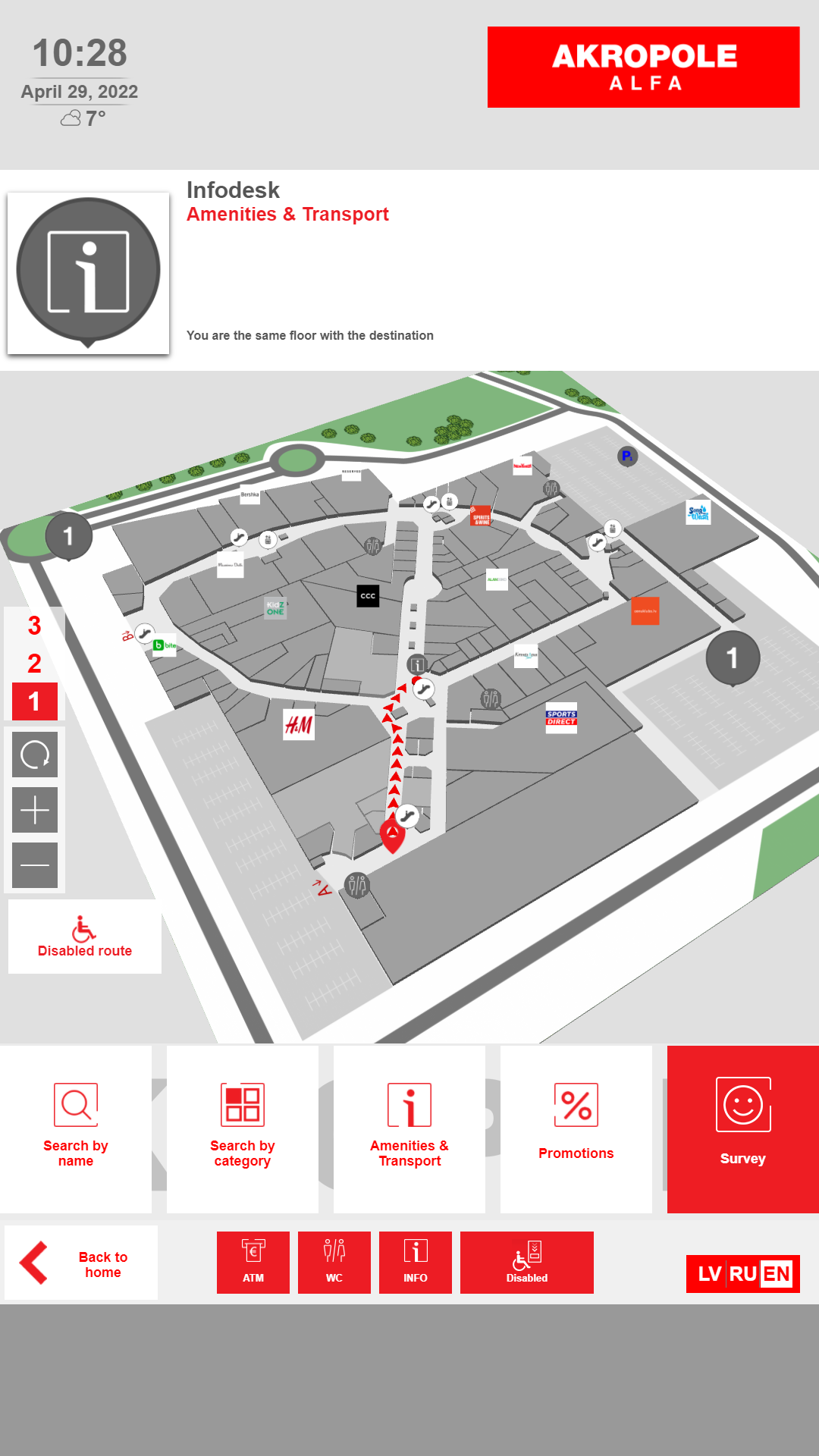 El software se creó especialmente para el centro comercial alfa, respetando su identidad y representando su inmenso terreno en un mapa 3D interactivo.