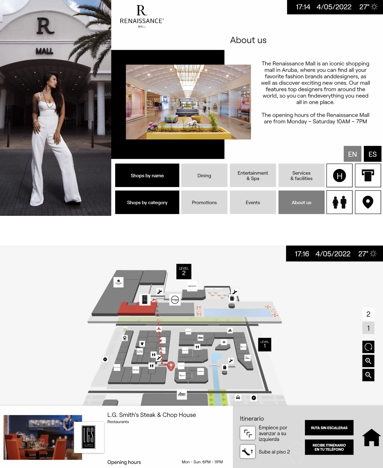 The features of the Aruba Renaissance Mall wayfinding software include…