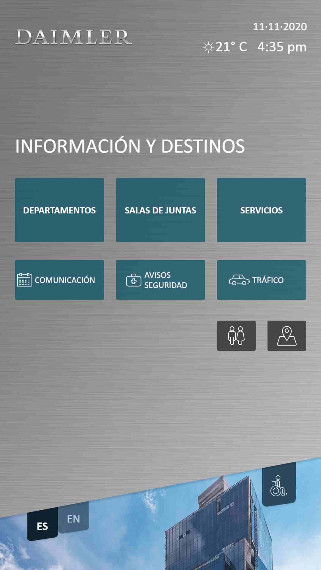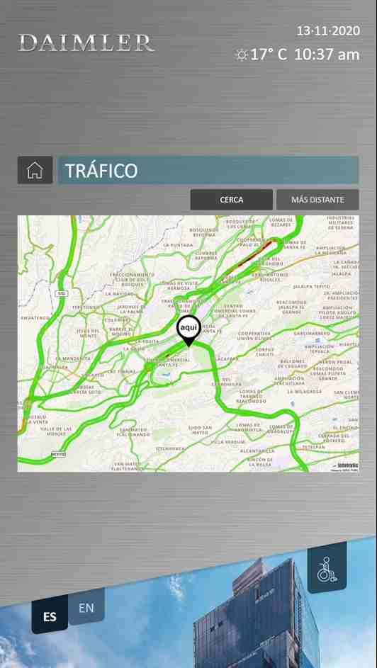 El ViaDirect’s software includes a 3D map of Daimler’s new headquarters in Mexico spread over 10 floors, where employees can search for destinations such as meeting rooms, company areas, and company restaurants. In addition, the software also includes a projection of real-time road traffic conditions around the corporate building.