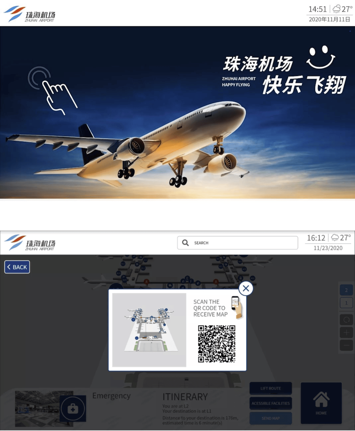 With airports regaining confidence in welcoming more passengers, Zhuhai Jinwan Airport decided to invest in the future by equipping quioscos de orientación : 3 neat-designed kiosks providing useful information to any passenger of the Airport.