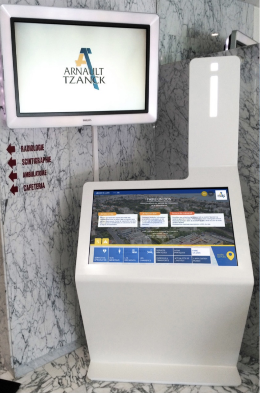 Equipped since 2017 with the ViaDirect wayfinding and information solution, it has two ., model Gazelle with a 43″ touch screen, specially designed and conceived to be multifunctional and ergonomic in order to suit all the institute’s clients and visitors.