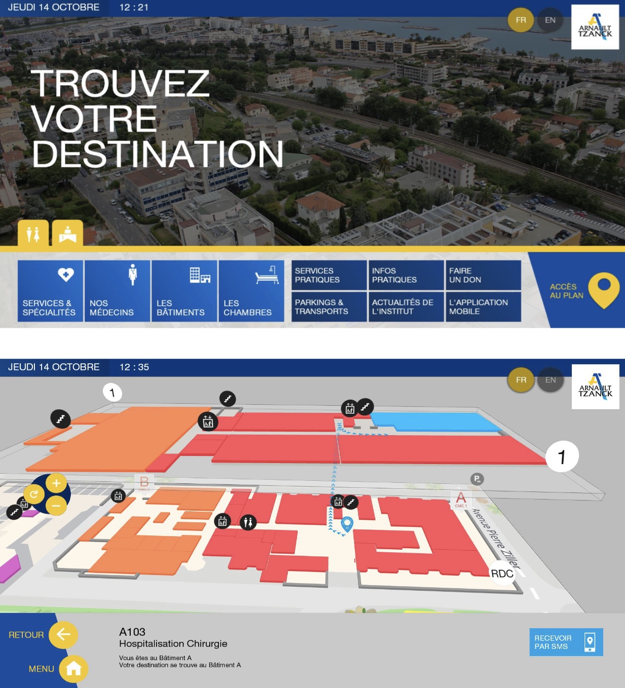 In order to optimise the existing solution, ViaDirect provided the Arnault Tzanck Institute with the última versión of its wayfinding software, V4. This version contains all the necessary features to meet the client’s expectations.