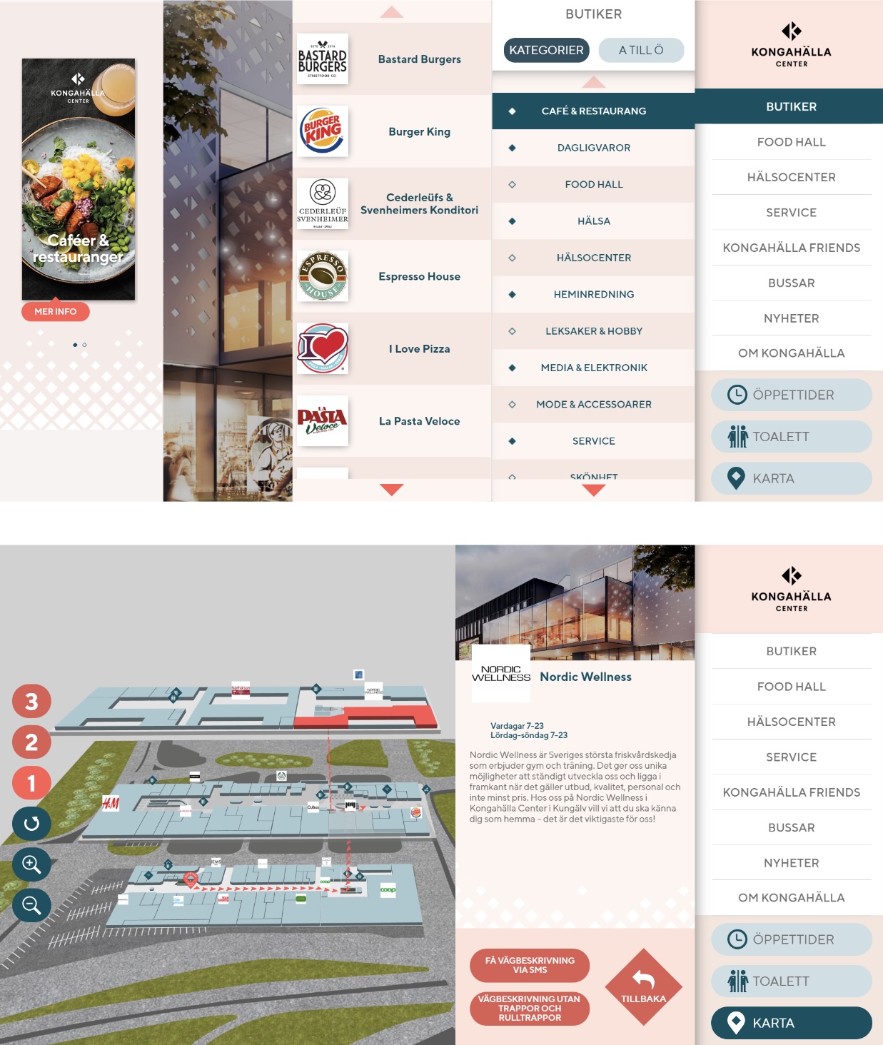 A 2D map of the mall for the Kongahälla Center’s website is also linked to the interactive 3D map available inside the mall.