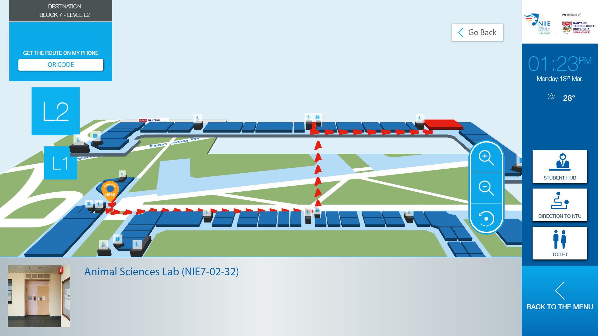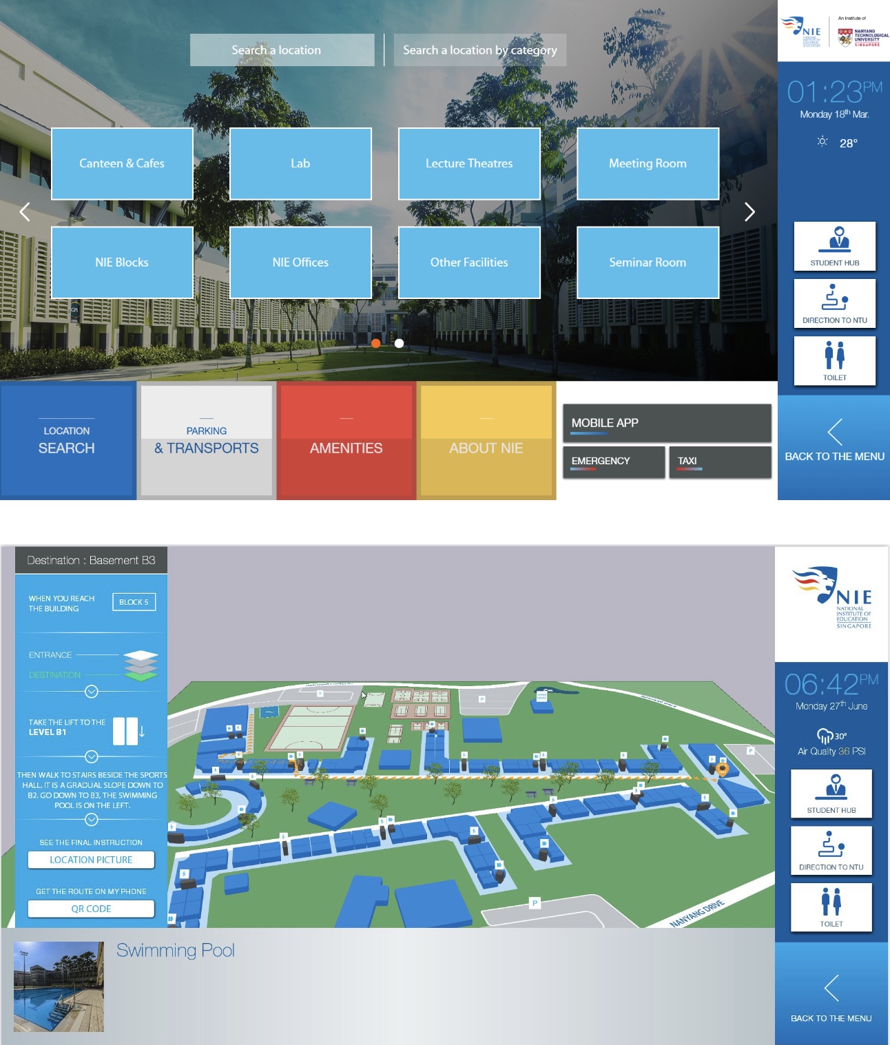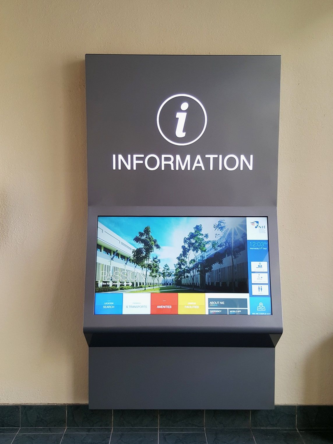In order to reach that goal, ViaDirect, expert in 3D wayfinding and interactive solutions, and Ascenstar, ViaDirect’s local partner expert in Digital Signage and interactive directories, have been selected by NIE to develop an innovative kiosk solution running ViaDirect’s 3D wayfinding software application.