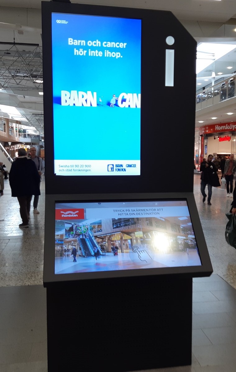 ViaDirect et Clear Channel Suède then partnered to equip the new looking mall with a set of 7 huge Pelikan kiosks.