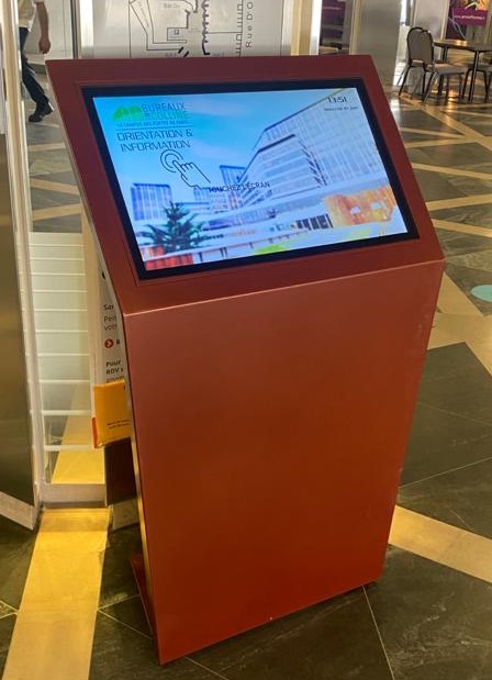 The software kiosks allow you to find your way to specific offices, services, restaurants or shopping areas.